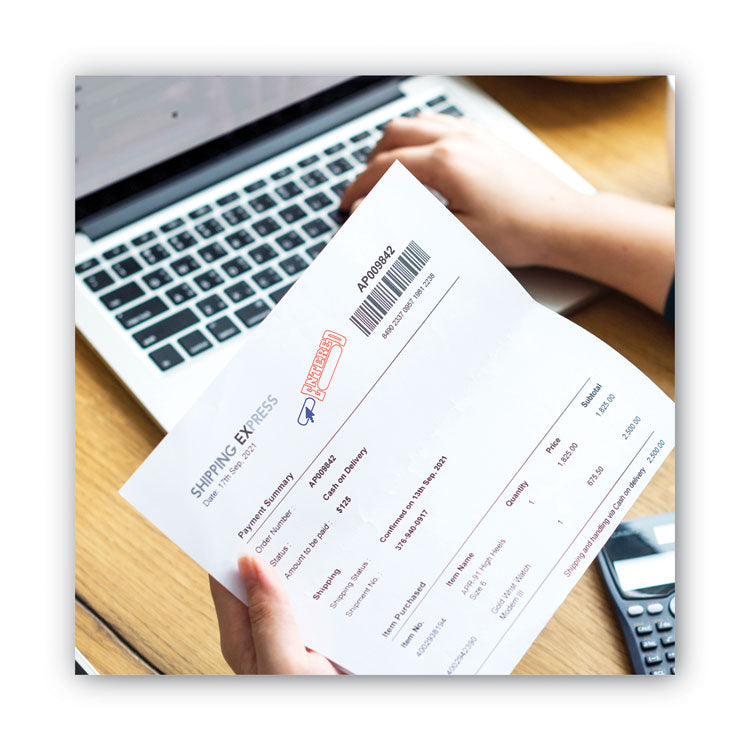 View Details- Offers a quick and efficient way to mark your documents with a message in bright ink. Impression size is 1.63 x 0.5".