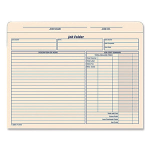 Organize work orders, invoices and other project information with these expanding job folders. Three-sided closures keep paper secure inside, while the thumb-cut fronts offer easy access to the documents stored inside. Each jacket features a preprinted form with inputs for job names, materials, labor costs and other important details. With 2" expansions, these Adams® manila job folders hold thick stacks of paperwork.