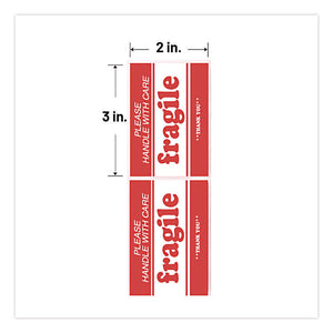 Pre-Printed Message Labels, Fragile-Please Handle With Care-Thank You, 2 X 3, White/red, 500/roll