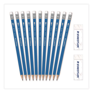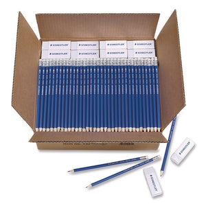 Pre-Sharpened Wooden Pencils with (40) Block Erasers, HB #2 Black Lead, Blue Barrel, 500/Pack