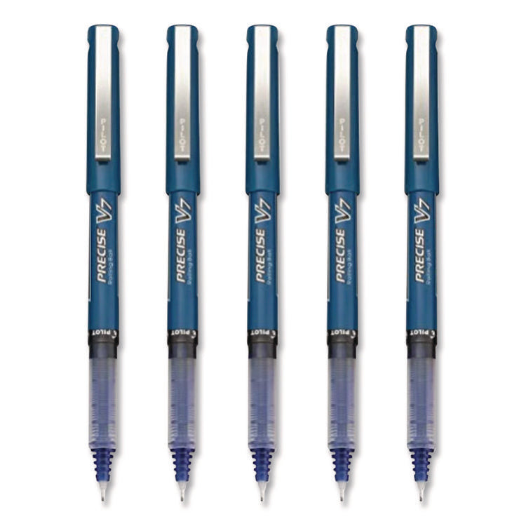 Precise V7 Rollerball Pen, Stick, Fine 0.7 mm, Blue Ink, Blue/Clear Barrel, 5/Pack