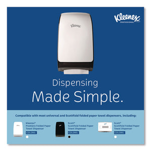 Make wasted paper towels a thing of the past with premium Kleenex Scottfold Paper Towels. Their unique fold is designed for true one-at-a-time dispensing, every time. They reduce tabbing, tearing and multiple dispensing, which results in less waste – always good for your business' bottom line. Plus, they unfold as they dispense, so your guests will know they're big enough to get the drying job done – with just one commercial paper towel. Kleenex Scottfold Paper Towels feature superior Absorbency Pockets with fast-drying ridges for excellent absorbency and performance. These smartly designed paper towels fit with most universal folded towel dispensers. They are an excellent value, with a guarantee to be cost neutral (versus C-fold towels). Kleenex Scottfold towels are a smart, first-class choice for your business!