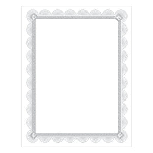 Premium Certificates, 8.5 X 11, White/silver With Spiro Silver Foil Border,15/pack