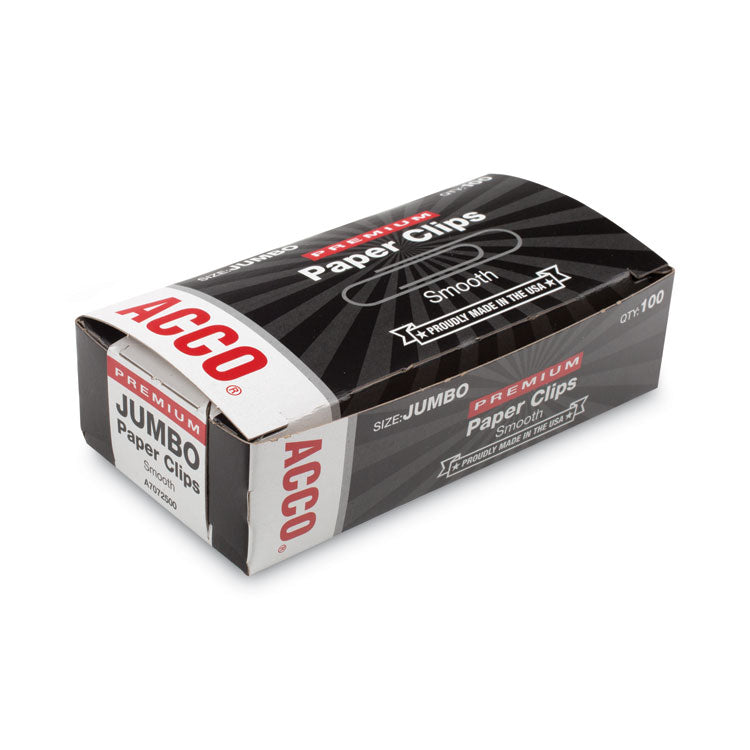 Premium Heavy-Gauge Wire Paper Clips, Jumbo, Smooth, Silver, 100 Clips/Box, 10 Boxes/Pack