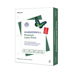 Premium Laser Print Paper, 98 Bright, 3-Hole, 24 lb Bond Weight, 8.5 x 11, White, 500/Ream