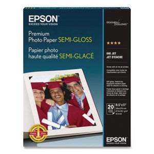 Premium Photo Paper, 10.4 Mil, 8.5 X 11, Semi-Gloss White, 20/pack