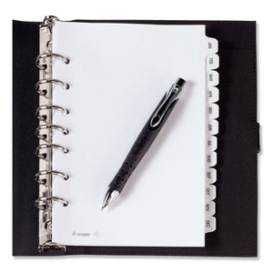 Get organized with these Mini Pre-printed Dividers. The small size is perfect for dividing mini binders or planners. The handy pre-printed tabs give you more versatility, and the clear reinforced binding edge and tabs offer greater durability. Quickly find the section you are looking for with easy-to-read black lettering. For easy reference at a glance, our pre-printed dividers spell it out for you. These dividers are seven hole-punched for 5.5" x 8.5" small format binders and organizers.