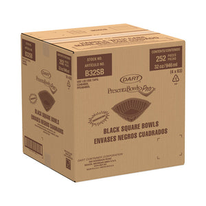 PresentaBowls Pro Black Square Bowls, 32 oz, 8.5 x 8.5 x 2, Plastic, 63/Bag, 4 Bags/Carton
