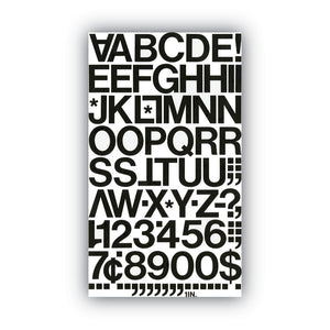 For signs, posters and equipment identification. Self adhesive vinyl will stick to most clean, dry surfaces. Can be used indoors or outdoors. Punctuation and monetary symbols included. Permanent adhesive.