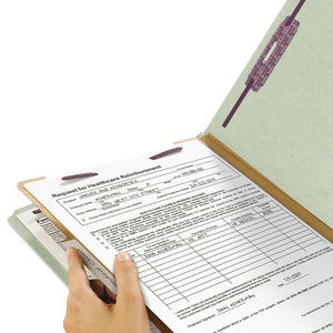 Pressboard Classification Folders, Four SafeSHIELD Fasteners, 2/5-Cut Tabs, 1 Divider, Legal Size, Gray-Green, 10/Box