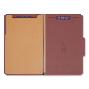 Pressboard Classification Folders, Six SafeSHIELD Fasteners, 2/5-Cut Tabs, 2 Dividers, Legal Size, Red, 10/Box