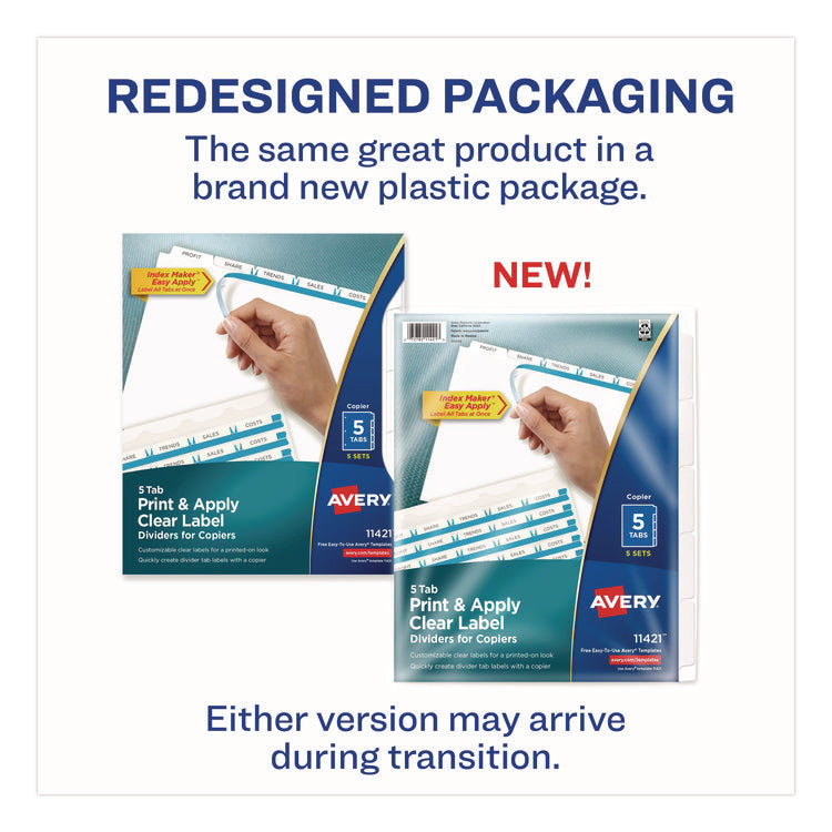 Print and Apply Index Maker Clear Label Dividers, Copiers, 5-Tab, 11 x 8.5, White, 5 Sets