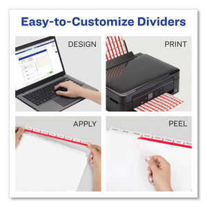 Whether you're organizing a single project or creating multiple sets, Index Maker® clear labels virtually disappear on divider tabs to give you a professional printed-on look. The Easy Apply label strip lets you label all tabs at once. Easy to customize with free templates from Avery Design & Print. Big Tab and Extra Wide selections offer greater convenience in office-wide references. Standard and mini size selections provide streamlined indexing in standard binders, planners and small personal binders. For laser and inkjet printers.