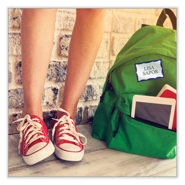 Printable Adhesive Name Badges, 3.38 X 2.33, Blue Border, 100/pack
