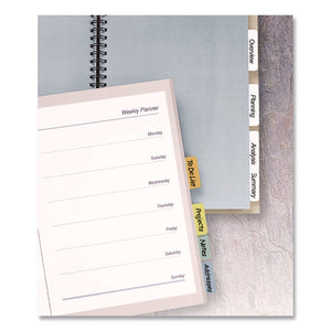 This is one sticky situation you'll appreciate. With these Printable Self-Adhesive Tabs, you can organize bound reports, reference manuals, personal organizers and more quickly and easily. Use free easy-to-use templates from Avery Design & Print to format the tabs for printing, or label them by hand. The self-adhesive tabs are repositionable when applied, allowing for a bit of experimentation to find just the right spot. Over time, the adhesive becomes permanent, proving these tabs will stick by you for the long term. Handwrite or print tabs using laser and inkjet printers.