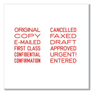 Hold 12 popular messages in one convenient, compact self-inking stamp. Choose from APPROVED, CONFIDENTIAL, COPY, EMAILED, ENTERED, FAXED, FOR DEPOSIT ONLY, ORIGINAL, PAID, POSTED, RECEIVED and VOID. Perfect for rapid, repetitive stamping. Produces 10,000 impressions before the stamp pad needs to be replaced.
