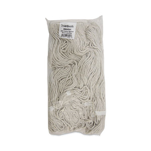 This sturdy mop head is made with premium four-ply yarn and a heavy-duty, polyester tape headband. Constructed with a looped-end design that minimizes less lint, fraying, and unraveling. Built to be durable, the double-sewn tailband prevents tangles and provides more floor coverage. Made from high-quality fiber. Great for general cleaning or floor finishing. For use with clamp style mop handles, which are sold separately.