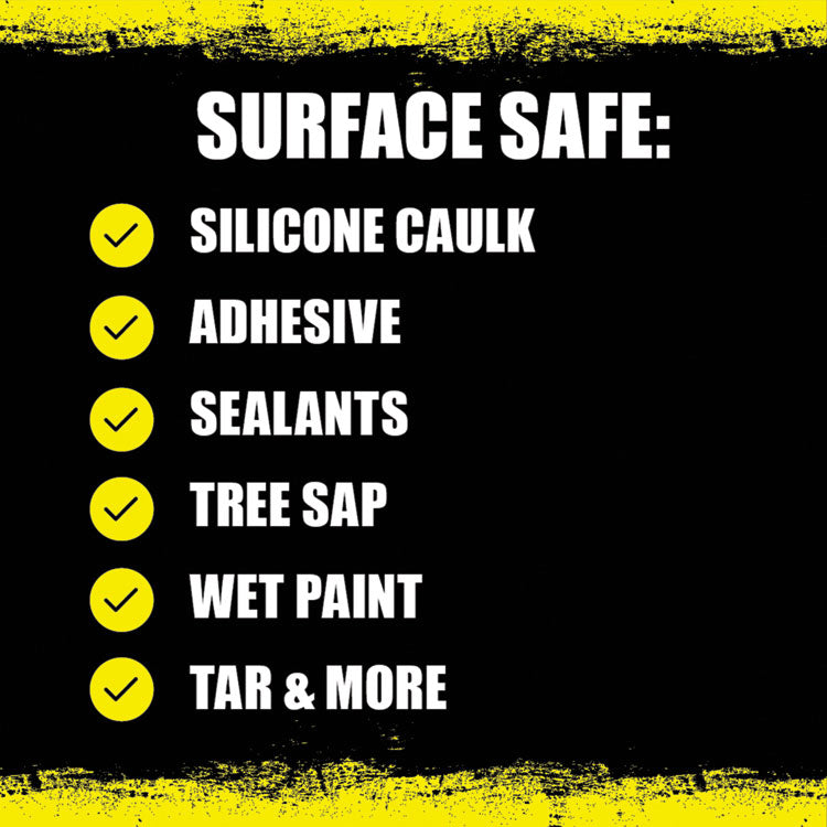 - Removes silicone caulk, contractor's adhesive, grease, tar, tape, tape residue, varnish, wax and glue.