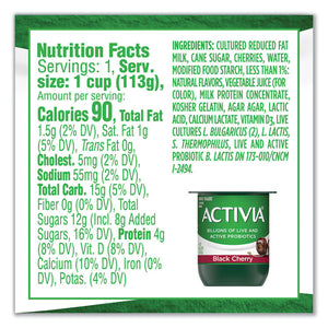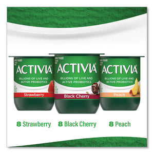 Probiotic Lowfat Yogurt, 4 oz Cups, Black Cherry/Peach/Strawberry, 24/Pack