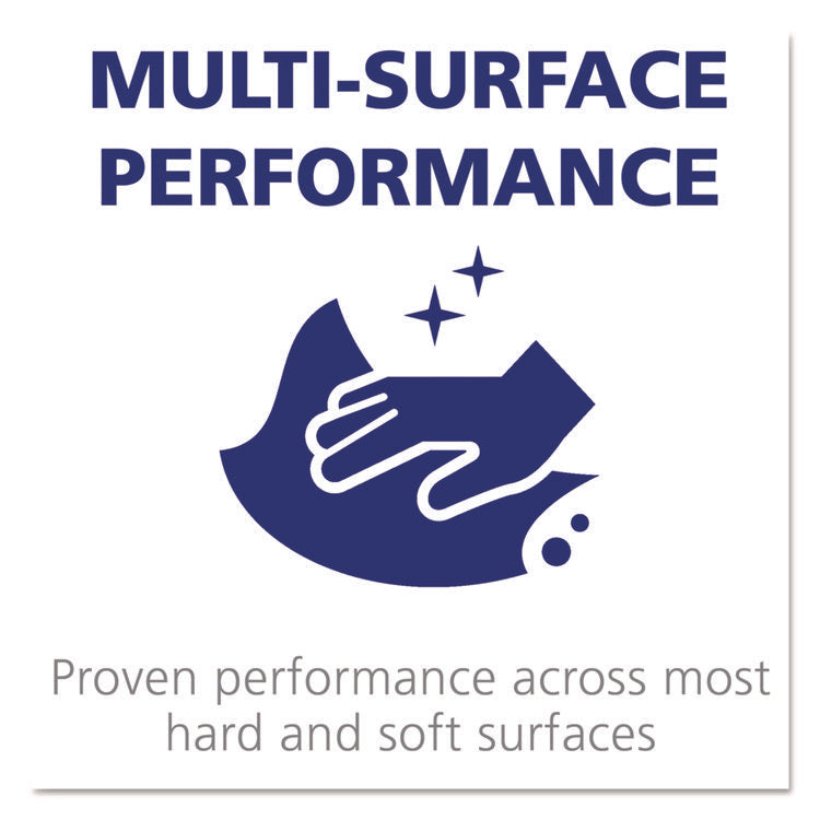- Proven on most hard and soft surfaces, and can be used on food-contact surfaces with no rinse required.