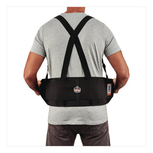 The ProFlex 1650 Economy Elastic Back Support Brace is designed to remind workers of proper lifting techniques while also enhancing the body's intra-abdominal pressure, moving the stress away from the spine for back-pain relief. Flexible, breathable all-elastic body with a 7.5" wide belt provides extra-firm support. Before lifting heavy objects, simply tighten the support belt to enhance the body's intra-abdominal pressure; and after lifting, just loosen the belt to achieve a wider range of motion. Secure-fit, interior rubber-track webbing prevents the belt from riding up when bending or lifting. Innovative Power Panel Positioners keep the tension bands close-to-hand, making it easy to get the desired level of tension. Non-conductive polypropylene stays help ensure long-lasting integrity. Adjustable, detachable suspenders allow the wearer to tailor the shoulder-fit to his or her unique needs. For best results, the support should fit snugly around the wearer's hips, with the front of the support two-fingers below the wearer's navel. When worn correctly, workers can easily maintain the proper posture for lifting, while achieving the extra support required to safely complete the task. Easy-wear, 5" wide fastener strap with hook and loop closure keeps the belt securely fastened while in use. Brace can be worn over or underneath clothing. Machine washable—machine-wash cold and air dry.