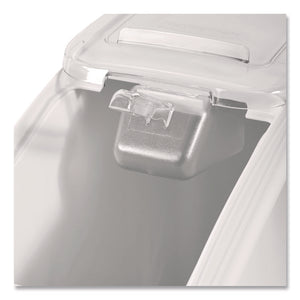 The Rubbermaid Commercial ProSave Ingredient and Food Storage Mobile Bin is a bulk food storage container on wheels. With a slanted front, sliding opening, and 32-ounce scoop, these food storage containers makes it easy to transport ingredients. These bulk food storage containers feature 2 fixed front casters and 2 swivel rear casters that provide superior maneuverability. The mobile bin has a white bottom and clear lid for easy identification of ingredients.