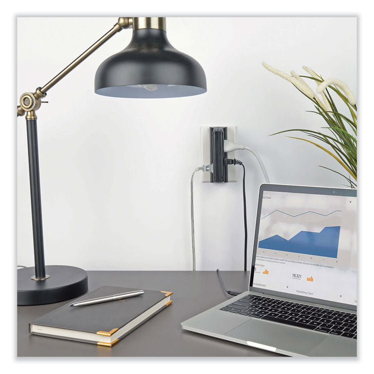 - Direct plug-in design converts two outlets into four by plugging in to any wall outlet.