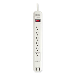 Protect It! Surge Protector, 6 AC Outlets/2 USB Ports, 6 ft Cord, 990 J, Cool Gray