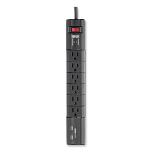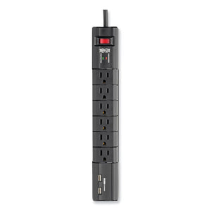 Protect It! Surge Protector, 6 AC Outlets/2 USB Ports, 8 ft Cord, 1,080 J, Black