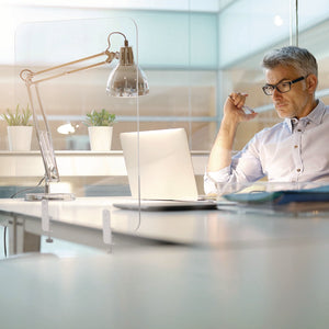 Due to the COVID-19 pandemic, social distancing and personal protection have become the new norm in order to stay safe. MasterVision introduces to you the Protector Series, designed specifically to protect you in public spaces. The Protector Frameless Glass Desktop Divider is an important tool that helps users maintain contact while still being protected. Ideal for shared office spaces and other public settings. Extremely easy to clean and sanitize. Features a pair of robust clamps which attach to the tabletop or desktop.