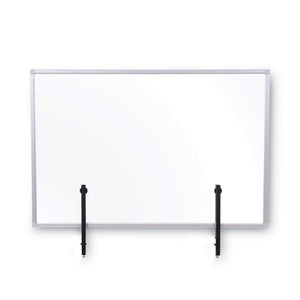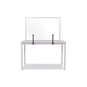 Due to the COVID-19 pandemic, social distancing and personal protection have become the new norm in order to stay safe. MasterVision introduces to you the Protector Series, designed specifically to protect you in public spaces. Transparent Glass Aluminum Desktop Divider allows users to stay protected while maintaining visibility. Ideal product for desks and tables across multiple areas such as offices, restaurants and other public settings. Features an aluminum frame and a pair of robust clamps which attach to the tabletop or desktop.