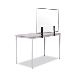 Due to the COVID-19 pandemic, social distancing and personal protection have become the new norm in order to stay safe. MasterVision introduces to you the Protector Series, designed specifically to protect you in public spaces. Transparent Glass Aluminum Desktop Divider allows users to stay protected while maintaining visibility. Ideal product for desks and tables across multiple areas such as offices, restaurants and other public settings. Features an aluminum frame and a pair of robust clamps which attach to the tabletop or desktop.