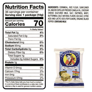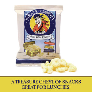 Get hooked on these cheesy baked rice and corn puffs. Gluten and trans-fat free. Contains no artificial flavors or preservatives. A healthy choice as well as a tasty one-Pirate's Booty contains 50% less fat and fewer calories than potato chips.