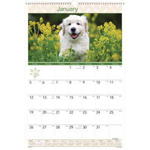Smile with a different adorable puppy each month. Features full-color photos. One month per page. Full-year calendar reference; federal holidays highlighted. Bonus page: current year reference calendar; chipboard backing; wirebound with hanging loop. Printed on high-quality paper with superior ink bleed resistance.