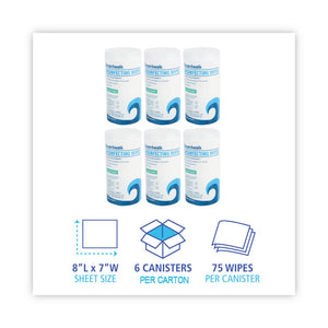 Quat-Based Disinfecting Wipes, 7 x 8, Fresh Scent, 75/Canister, 6 Canisters/Carton