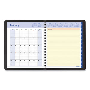 - Monthly: step-tabbed full month with ruled blocks on left page, QuickNotes® area on right page; two past and six future months reference.