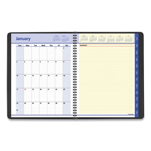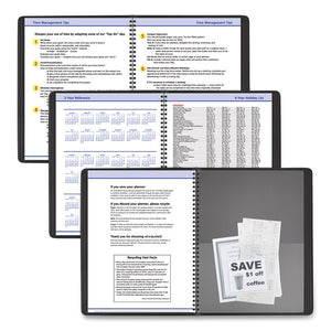 - Monthly: step-tabbed full month with ruled blocks on left page, QuickNotes® area on right page; two past and six future months reference.