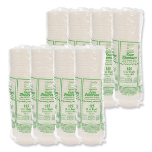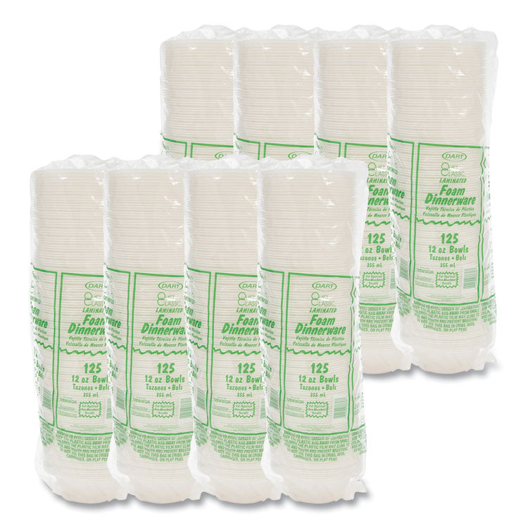 Quiet Classic Laminated Foam Dinnerware Bowls, 10 To 12 Oz, White, 125/pack, 8 Packs/carton