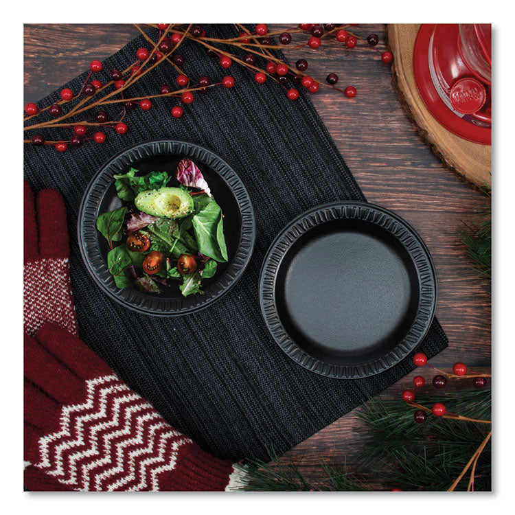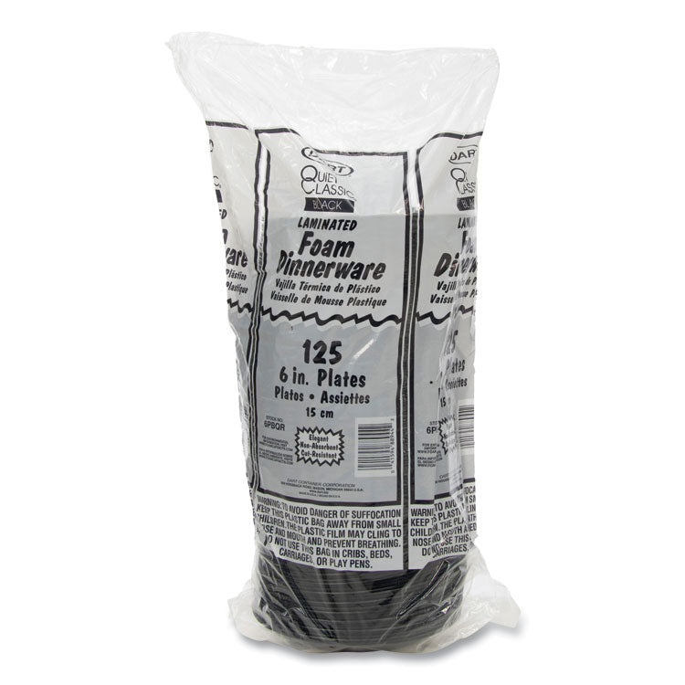 Quiet Classic Laminated Foam Dinnerware Plates, 6" dia, Black, 125/Pack, 8 Packs/Carton