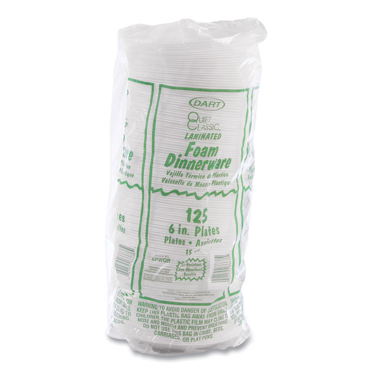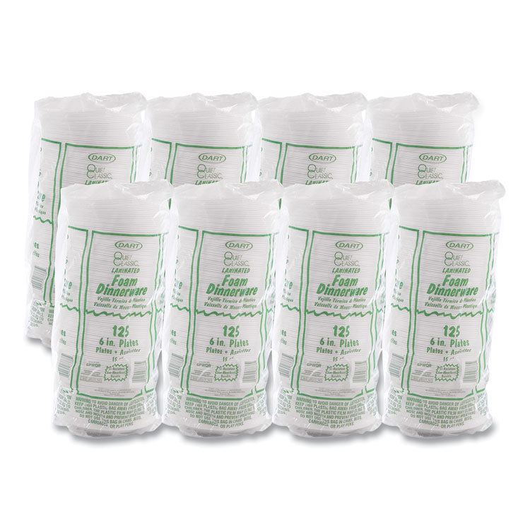 Quiet Classic Laminated Foam Dinnerware Plates, 6" dia, White, 125/Pack, 8 Packs/Carton