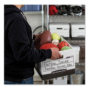 Heavy-duty, triple-end, double-side, double-bottom construction stacks up stronger and withstands frequent handling. FastFold® quick and easy assembly. Reinforced tear-resistant handles make box comfortable to carry. Deep, locking, lift-off lid stays in place for secure file storage. Smooth rolled edges add strength and prevent paper cuts. Great for storing home or office papers, and other documents, along with a variety of materials and items that you need to store for safe keeping.