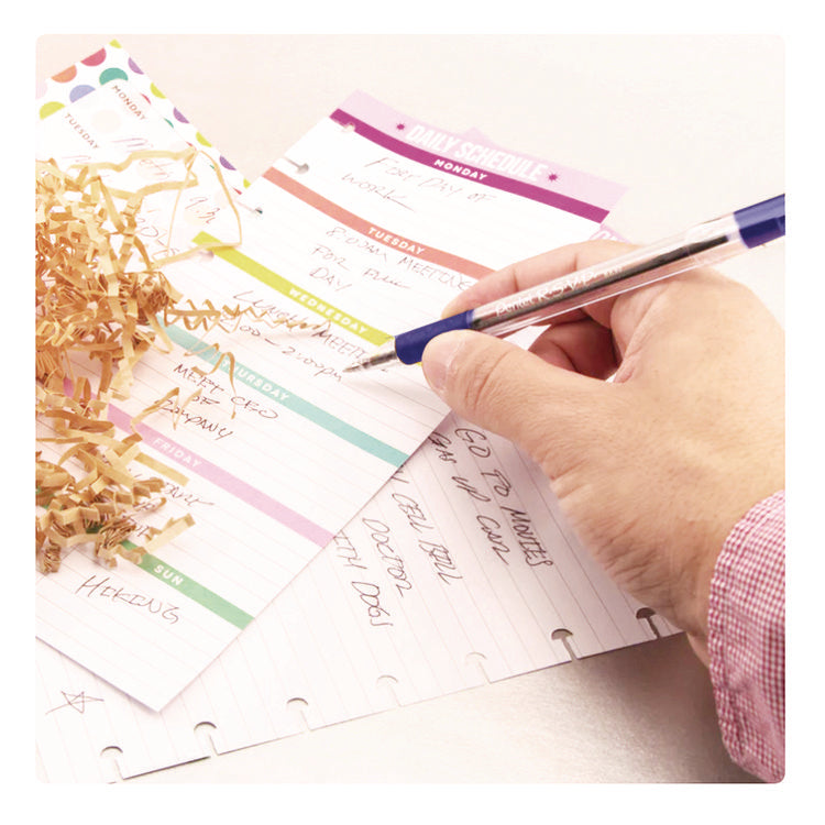 Writes for almost a mile. Long, well-balanced barrel makes this pen an easy-to-use, high-ink-capacity favorite. Reliable tip lays down a consistent, skip-free line. Comfort Zone grip helps you avoid writing fatigue. Transparent-plastic construction makes it easy to monitor your ink supply.