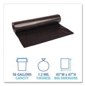 Recycled Low-Density Polyethylene Can Liners, 56 gal, 1.2 mil, 43" x 47", Black, Perforated, 10 Bags/Roll, 10 Rolls/Carton