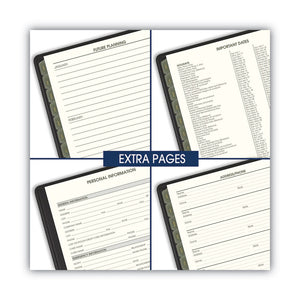 Show you care by choosing a monthly planner made from recycled materials. Features tips for "green living." Tabbed one month per two-page spread with unruled blocks; past, current and four future months reference. Telephone/address page.