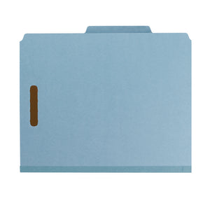 Recycled Pressboard Classification Folders, 2" Expansion, 2 Dividers, 4 Fasteners, Letter Size, Blue Exterior, 10/Box