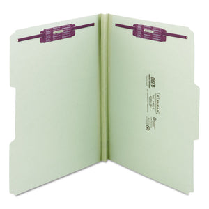Recycled Pressboard Fastener Folders, 1/3-Cut Tabs, Two SafeSHIELD Fasteners, 1" Expansion, Letter Size, Gray-Green, 25/Box
