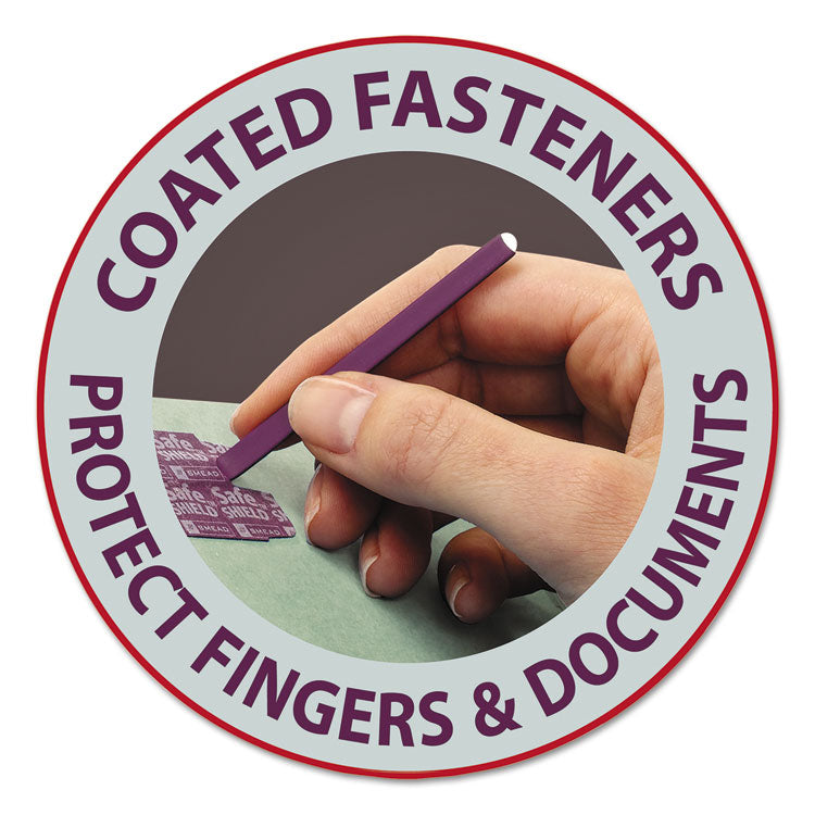 - SafeSHIELD® bonded fasteners are the ultimate solution to fastener issues, including paper tears, finger cuts and excessive fastener crinkling.