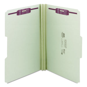 Recycled Pressboard Fastener Folders, 1/3-Cut Tabs, Two SafeSHIELD Fasteners, 2" Expansion, Legal Size, Gray-Green, 25/Box