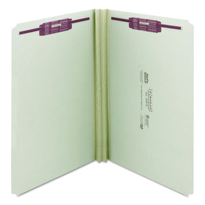 Recycled Pressboard Fastener Folders, Straight Tabs, Two SafeSHIELD Fasteners, 2" Expansion, Legal Size, Gray-Green, 25/Box