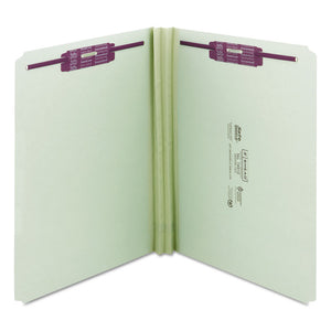 Recycled Pressboard Fastener Folders, Straight Tabs, Two SafeSHIELD Fasteners, 2" Expansion, Letter Size, Gray-Green, 25/Box